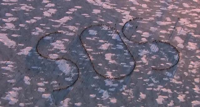 随着一场强力的北极寒流逼近,明尼阿波利斯的气温在1月骤降至零下。当地时间1月30日下午,抗议者们聚集在该市Bde MakaSka湖被冰封的湖面上,拼出了“SOS”字样,向世界发出求救信号。湖面上的温度只有约零下20摄氏度。