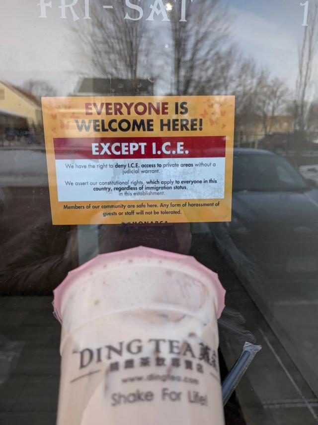一家商店的门口写着“ICE不得入内”。 受访者梅丽莎供图