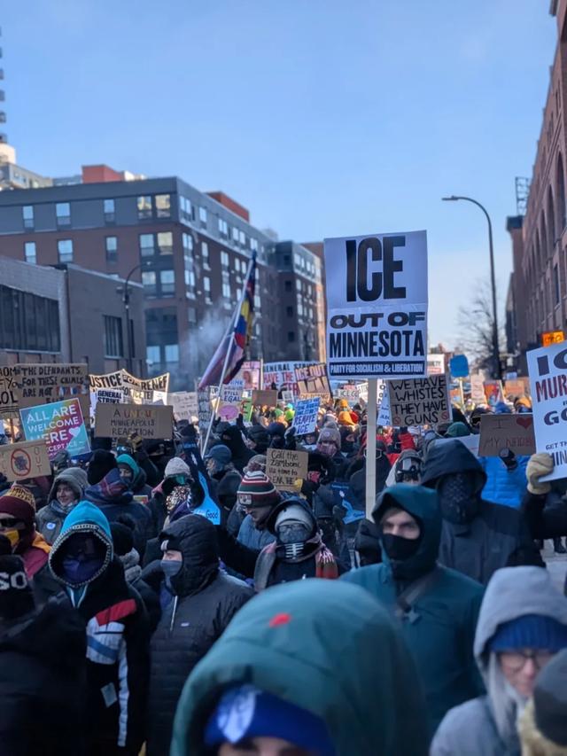 梅丽莎告诉澎湃新闻,她在两起枪击事件发生后参加了守夜悼念与和平抗议活动。“我们用垃圾桶和垃圾箱设置了路障,整个过程没有暴力,只有和平抗议与哀悼。我们通过吹哨警示民众他们的出现,并用手机记录现场。这是数十年来规模最大的罢工抗议,众多企业停业、工会组织参与,高喊‘将ICE逐出城市’的口号。”